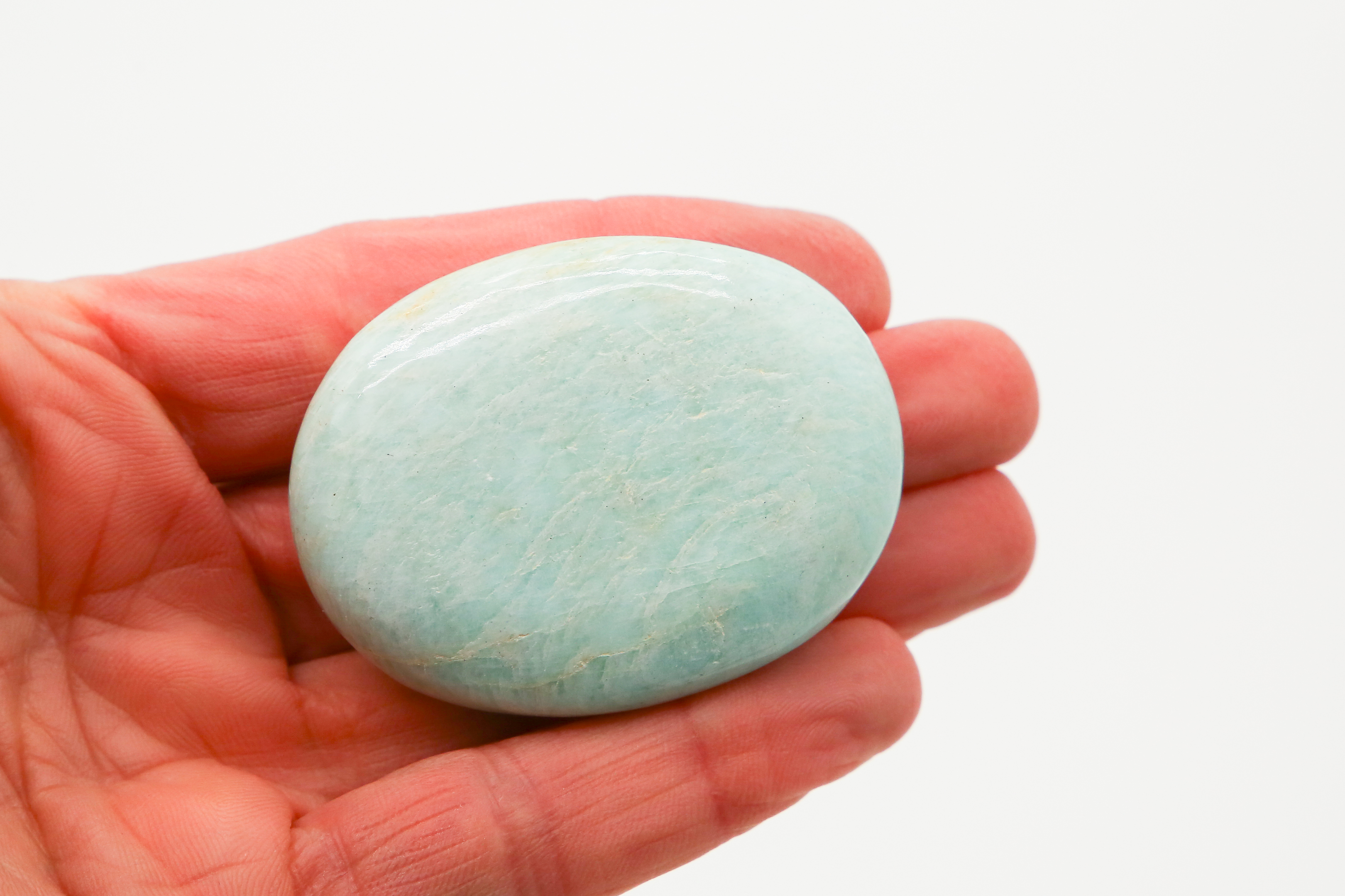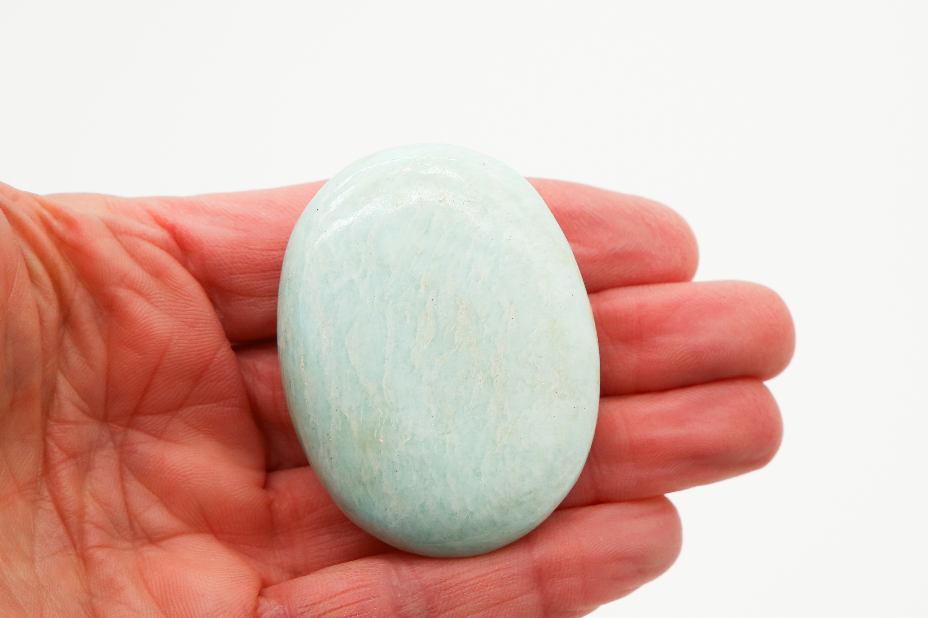 A lovely Amazonite Palmstone measuring approximately 6cm x 4.5cm and weighing 75g. With beautiful blues and green hues it is a stone of tranquility and it is soothing and peaceful.